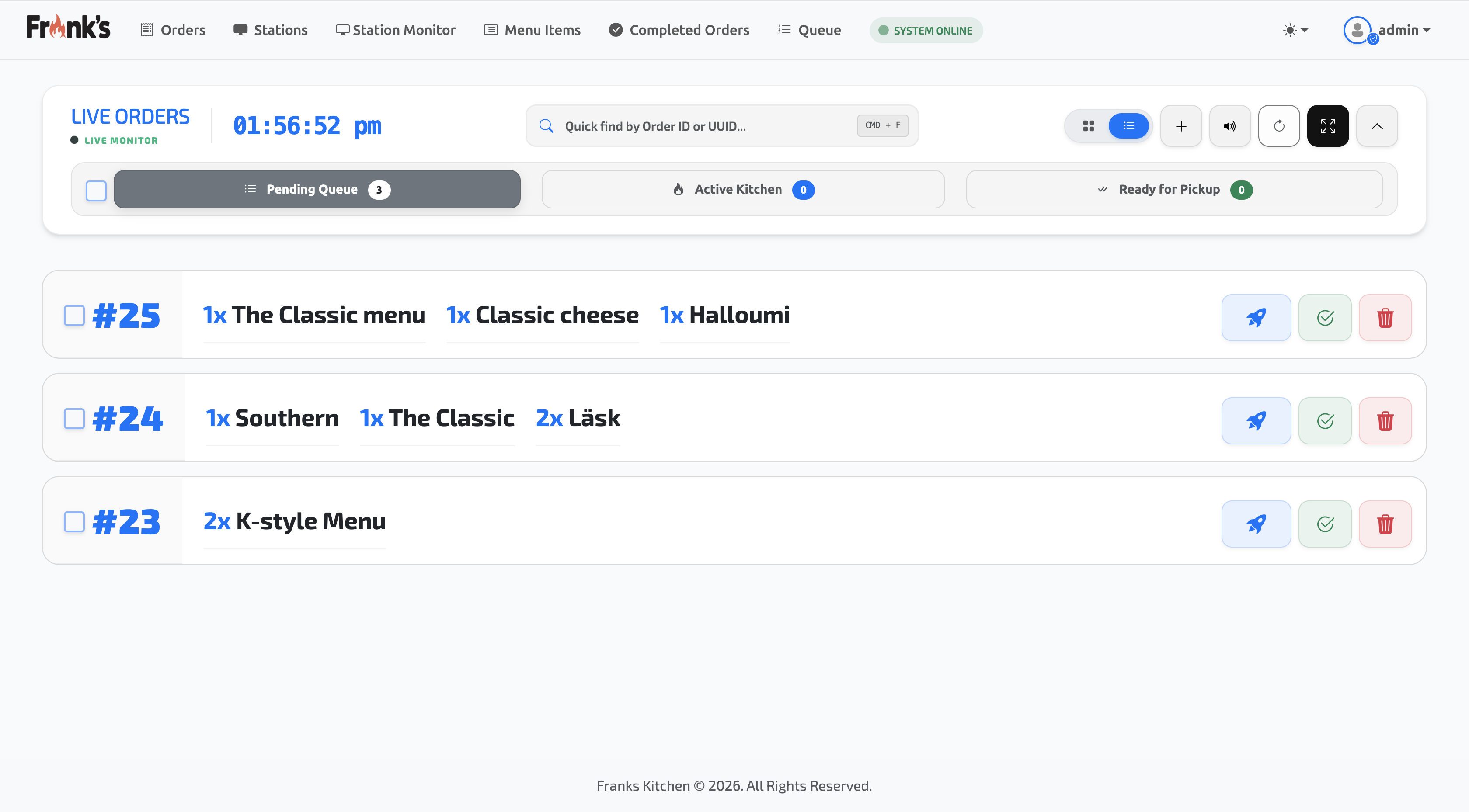 Franks KDS is a high-performance Kitchen Display System designed to streamline restaurant operations by replacing traditional paper tickets with a real-time digital workflow.